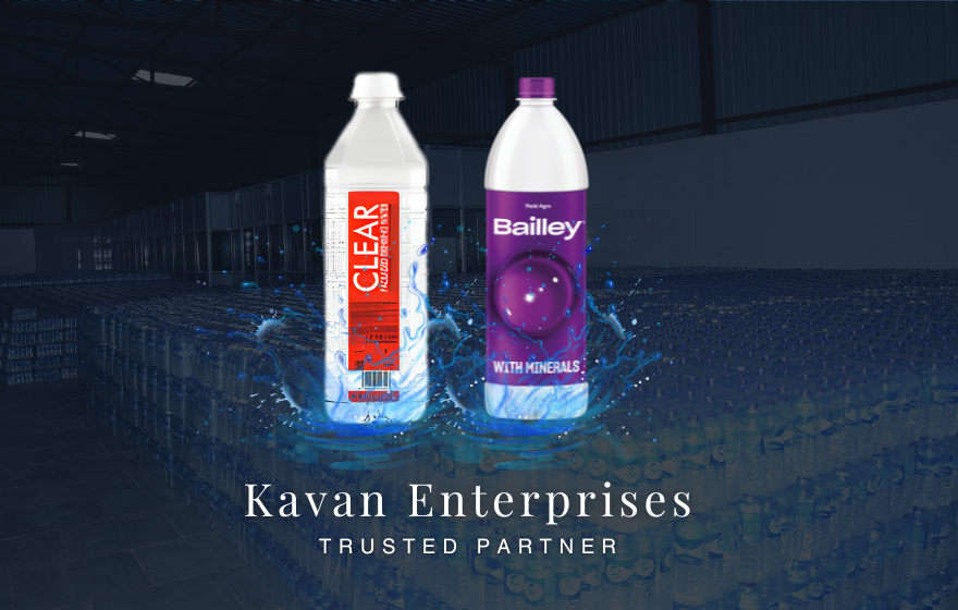 Kavan Enterprises is a reliable authorized distributor of Bailey Packaged Drinking Water and Clear Brand Water Bottles. We ensure safe, hygienic, and timely water delivery for homes, offices, events, and commercial establishments.